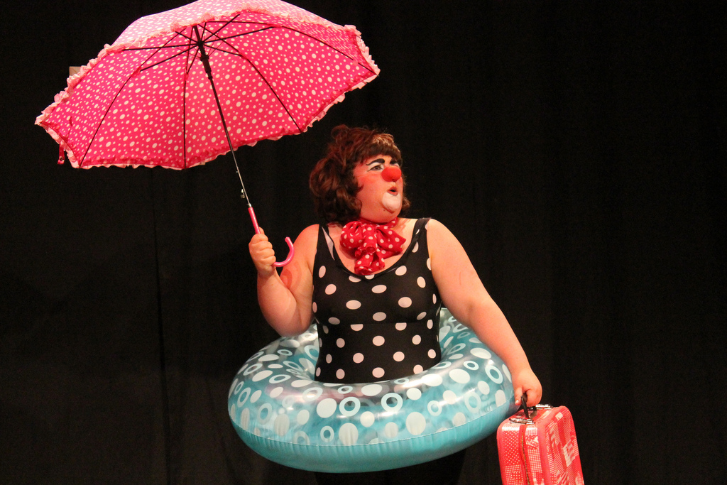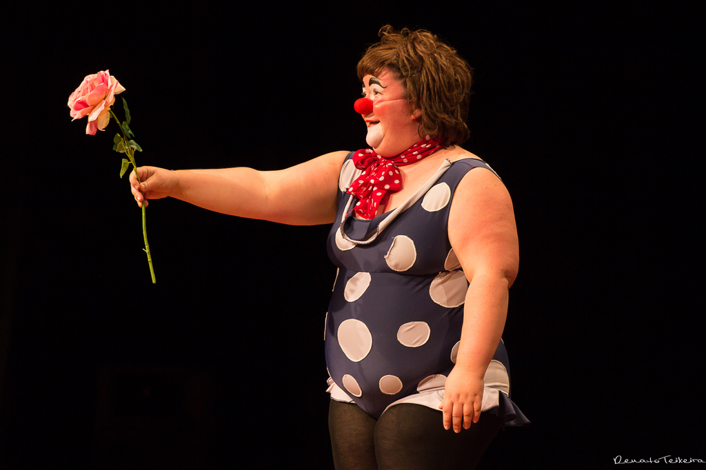 Primeiro espetáculo da atriz, foi criado em 2009, como um número cômico. Com o olhar atento do público infantil, foi se transformando em montagem teatral. Nele, de forma lúdica e interativa, a palhaça aborda a relação com seu corpo fora dos padrões, o sonho de conhecer a praia, que é algo distante para quem, assim como ela, vive no Oeste catarinense e a resiliência de transformar obstáculos em poesia e humor.