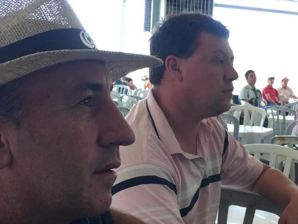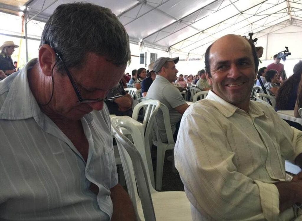 Jaga dando uma olhada no celular e Jairo presentes no evento da Copercampos