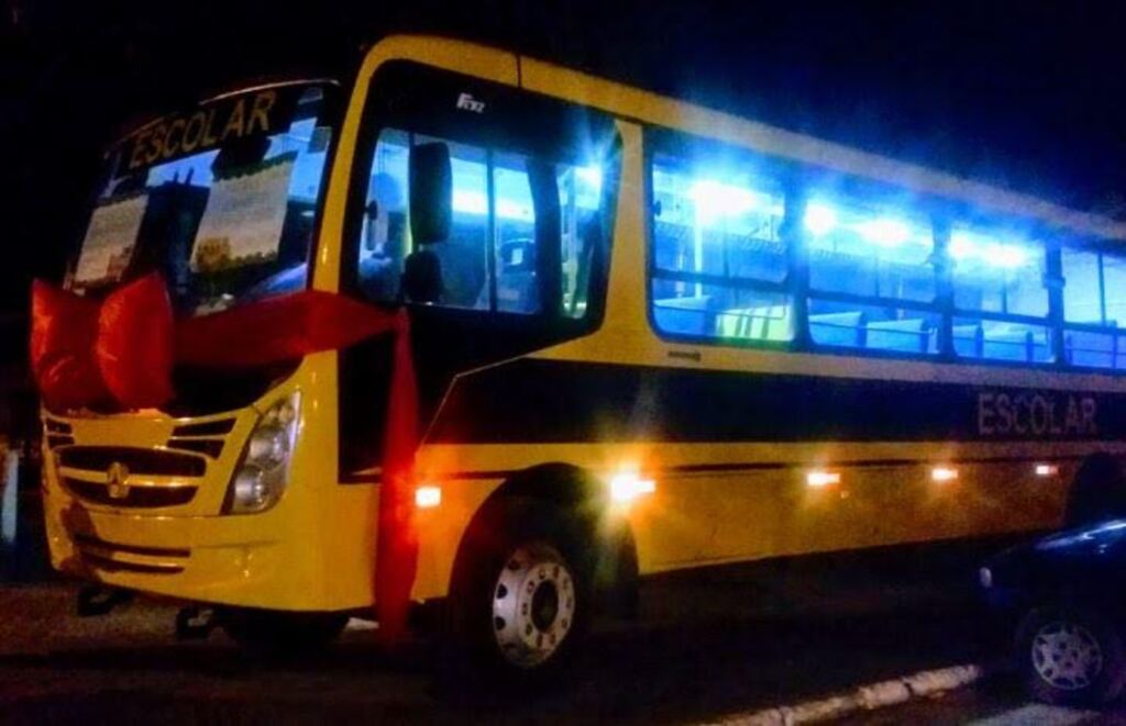 Ônibus escolar até com fita de presente chegou a Bocaina