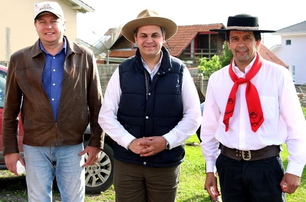 Tio Ligas na cavalgada com os prefeitos Mamão (Joaçaba) e Toni Duarte (Lages)