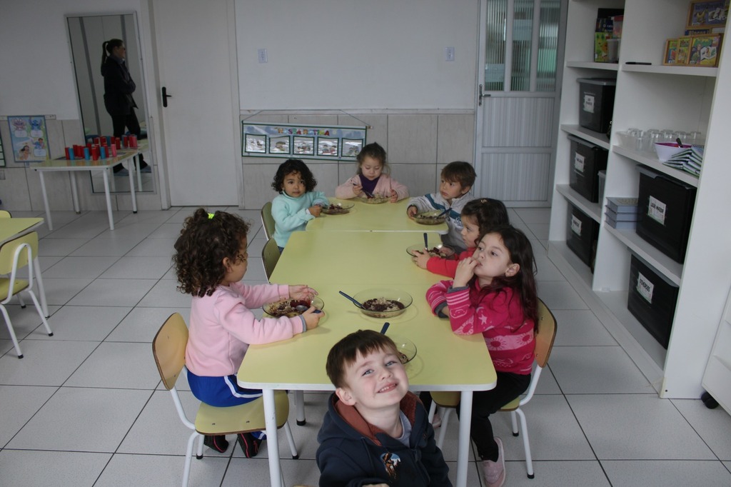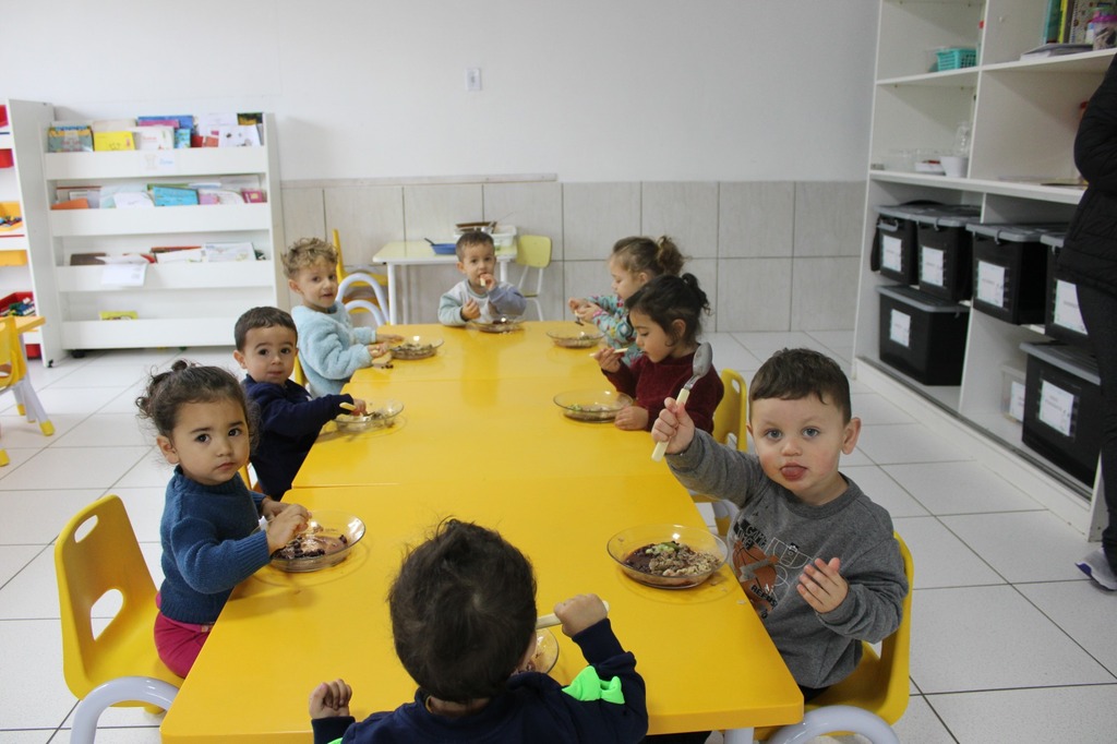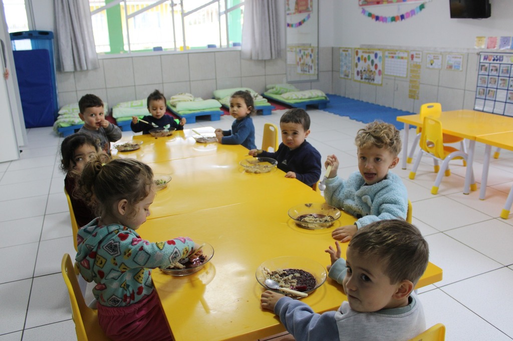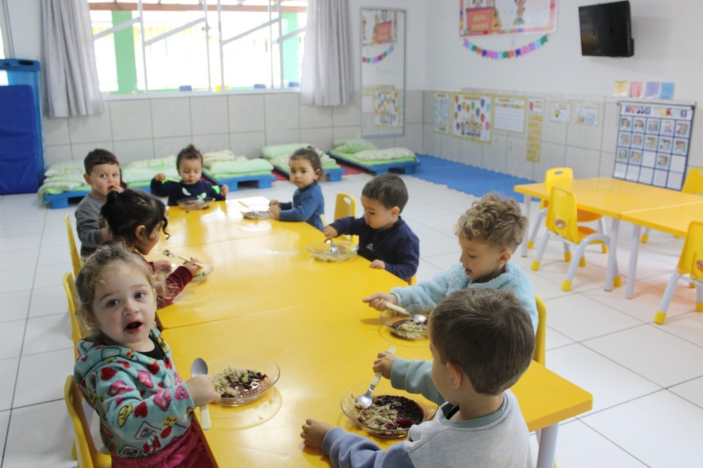 A merenda contempla desde o berçário até os alunos do 9º ano do Ensino Fundamental, promovendo não só uma alimentação saudável, mas também uma educação alimentar consciente.