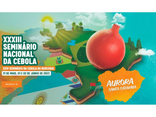 Santa Catarina recebe, entre 31 de maio e 2 de junho, o XXXIII Seminário Nacional da Cebola e o XXIV Seminário da Cebola do Mercosul. Os eventos acontecem paralelamente no Salão Paroquial da comunidade Santa Tereza, em Aurora, e terão como foco das palestras o manejo biológico de pragas e doenças da hortaliça.