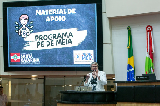 “Confesso que quando recebi a apresentação que está chegando às nossas escolas, enviada pela Secretaria de Estado da Educação, eu não acreditei. Santa Catarina aderiu ao programa de quem, de qual governo? Está faltando dizer que o Pé-de-Meia é do governo Federal. Acho que esqueceram. Na peça que contém toda a legislação, em nenhum momento aparece que é uma medida provisória do presidente Lula, que é uma lei federal do presidente Lula. Tem uma portaria que parece que não tem pai nem mãe”, disparou.