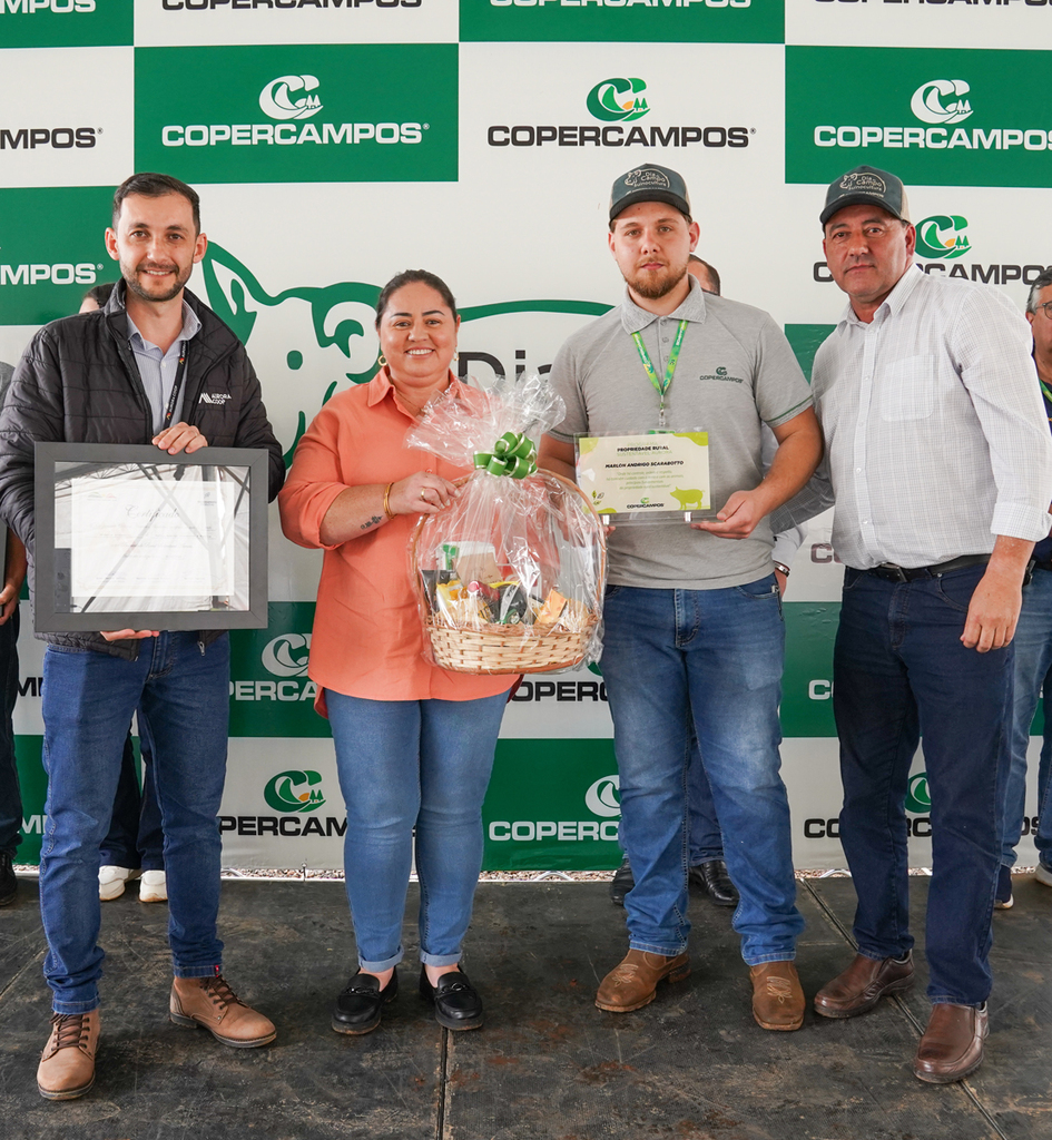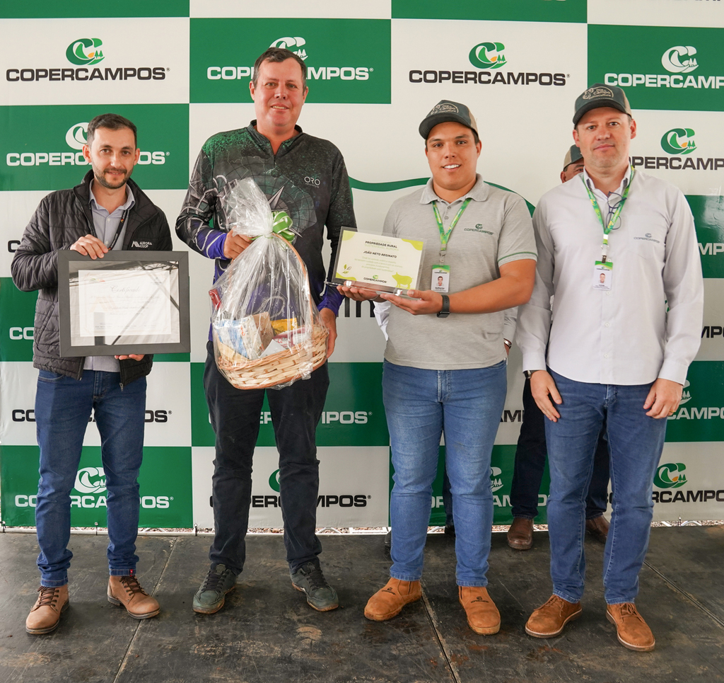 A Copercampos promoveu em 1º de outubro de 2025, o 1º Dia de Campo da Suinocultura, evento inédito voltado para associados e seus funcionários, com o objetivo de apresentar tecnologias, soluções inovadoras e boas práticas para facilitar o manejo, reduzir custos e ampliar a rentabilidade da atividade. O encontro foi realizado na propriedade do associado Davi Ribeiro, em Campos Novos/SC.Na abertura oficial, o Diretor Superintendente da Copercampos, Lucas de Almeida Chiocca, reforçou a importância da suinocultura para o desenvolvimento regional. “A suinocultura representa a diversificação de atividades para muitos associados e tem uma representatividade muito grande em nossa cooperativa. Este Dia de Campo foi pensado para a troca de ideias, conhecimentos e experiências entre os associados e ficamos felizes com a participação de todos os integrados do sistema neste evento”, ressaltou.Com a presença de diversos diretores da Copercampos, além do prefeito de Campos Novos Dirceu Kaiper, e representantes da Aurora Coop, o 1º Dia de Campo foi oportuno para a entrega dos Certificados de Propriedade Rural Sustentável Aurora (PRSA), reconhecimento concedido pela Aurora Coop a produtores que atendem aos rigorosos padrões de qualidade, bem-estar animal e sustentabilidade.Cinco associados da Copercampos foram homenageados com certificados, troféus e presentes: Davi Ribeiro – Campos Novos; Moacir Titon – Ibiam; João Neto Reginatto – Erval Velho; Evandro Basquera – Campos Novos e Marlon Andrigo Scarabotto (representado por sua esposa Arituza), também de Campos Novos.A certificação foi entregue pelo coordenador corporativo de Certificação de Propriedades Rurais da Aurora Coop, Gian Carlos Zacchi, acompanhado de diretores da Copercampos e técnicos responsáveis pelo atendimento das propriedades.Em nome dos produtores certificados, Davi Ribeiro destacou a importância do reconhecimento, agradecendo à cooperativa, aos técnicos e à Aurora Coop pelo apoio e incentivo na promoção de treinamentos e capacitação a fim de se obter o desenvolvimento da atividade.O evento contou com o apoio de empresas parceiras do setor, como Crystal Spring Brasil, MSD Saúde Animal, HIPRA Saúde Animal, KOBRA, GSI e EMBIO, que contribuíram para a realização da programação técnica.Durante seu pronunciamento, o Diretor Presidente Luiz Carlos Chiocca ressaltou o compromisso com a qualidade e a sustentabilidade. “Precisamos desenvolver nossa atividade com rentabilidade, e para isso, precisamos adotar práticas sustentáveis, focando sempre no bem-estar animal e em novas tecnologias. Parabenizamos os associados que receberam esta certificação e estes cinco devem servir de exemplo para que tenhamos mais propriedades certificadas, demonstrando toda nossa eficiência na produção de suínos”, destacou Chiocca.“Este é apenas o 1º Dia de Campo da Suinocultura, um espaço de conhecimento, valorização e integração. Esperamos todos novamente em 2026, no 2º Dia de Campo da Suinocultura da Copercampos para que possamos continuar a capacitar nossos associados e seus funcionários”, complementou o Gerente Agroindustrial Lúcio Marsal Rosa de Almeida.
