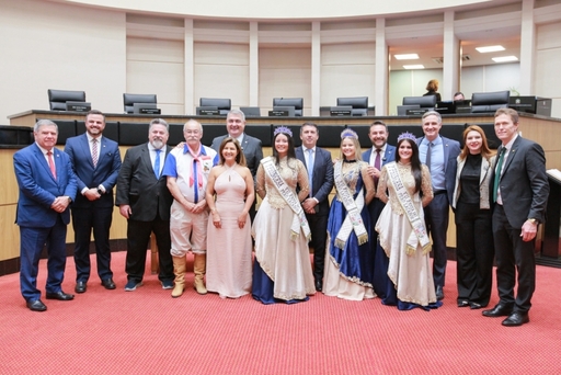 O requerimento que permitiu o pronunciamento da prefeita Lucia Raquel Rodrigues Ortiz e do vice-prefeito Casemiro Reuter de Liz, assim como da realeza da festa, partiu do deputado Marcius Machado (PL).