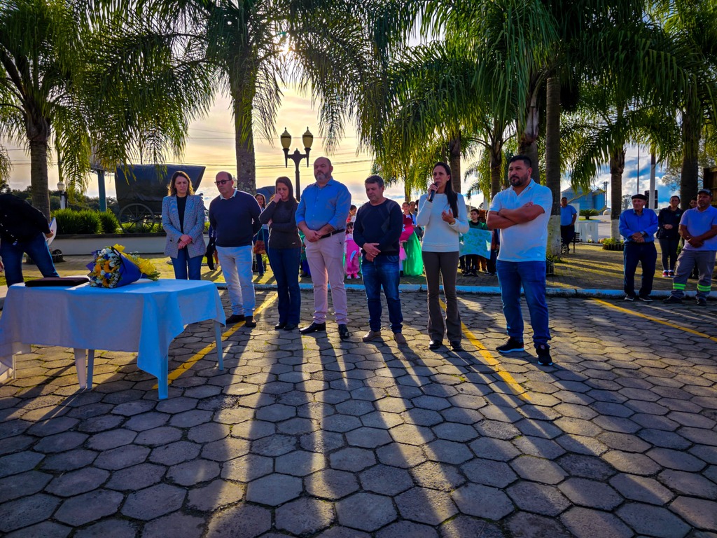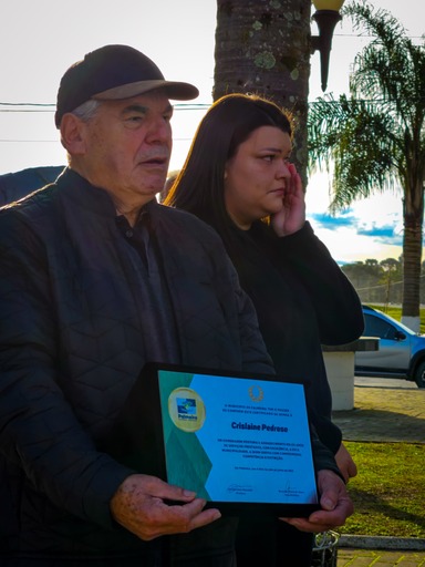 Durante a solenidade de encerramento, realizada em frente ao Paço Municipal Hermínio Alvim Matias, a emoção tomou conta. A família da Crislaine recebeu uma homenagem oficial do município, representada por uma placa e flores entregues pelo prefeito Sandro Masselai e pela primeira dama, Alexandra Masselai. Alunos do Núcleo Municipal Professor Benício protagonizaram uma linda apresentação em homenagem à ex-secretária, emocionando todos os presentes.