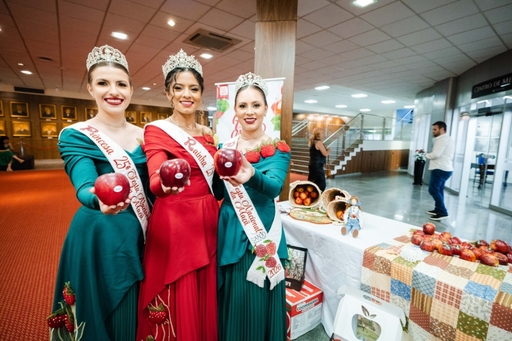 A sessão ordinária desta quarta-feira (8) foi interrompida para que o prefeito de São Joaquim, Dorinho, e a corte fizessem o convite aos parlamentares e sociedade catarinense para a 25ª Festa Nacional da Maçã, de 7 a 10 de maio.