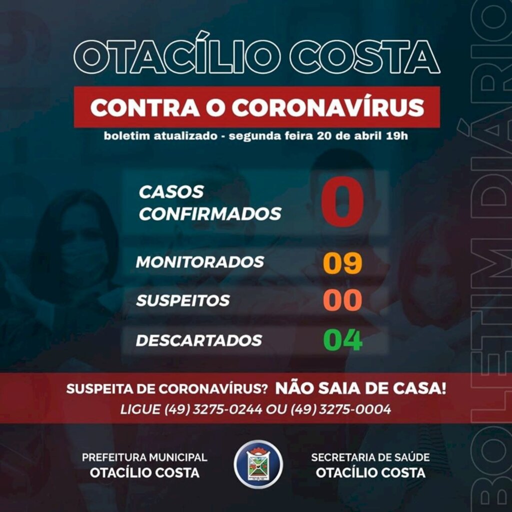 Conforme boletim enviado pela prefeitura de Otacílio Costa, na segunda-feira, 20, os dois casos de pacientes suspeitos da Covid-19 deram negativo para a doença.