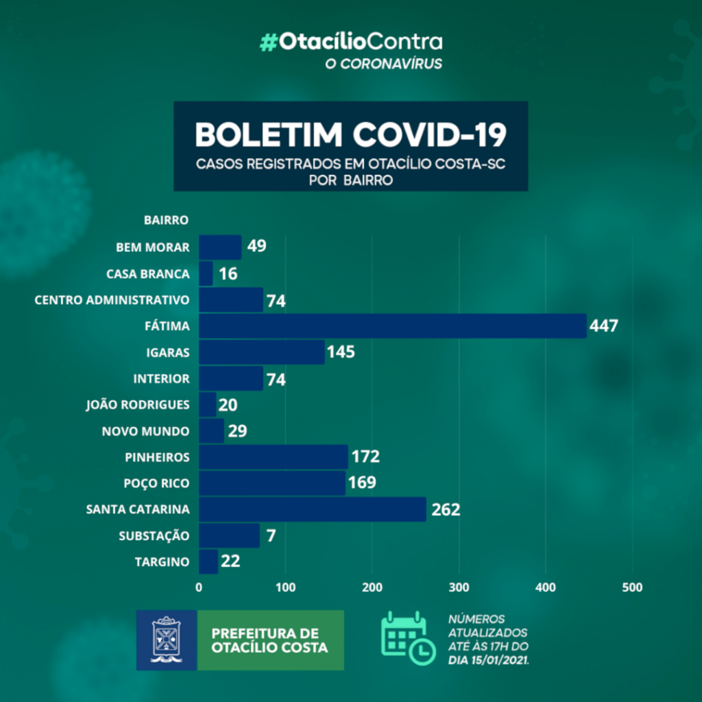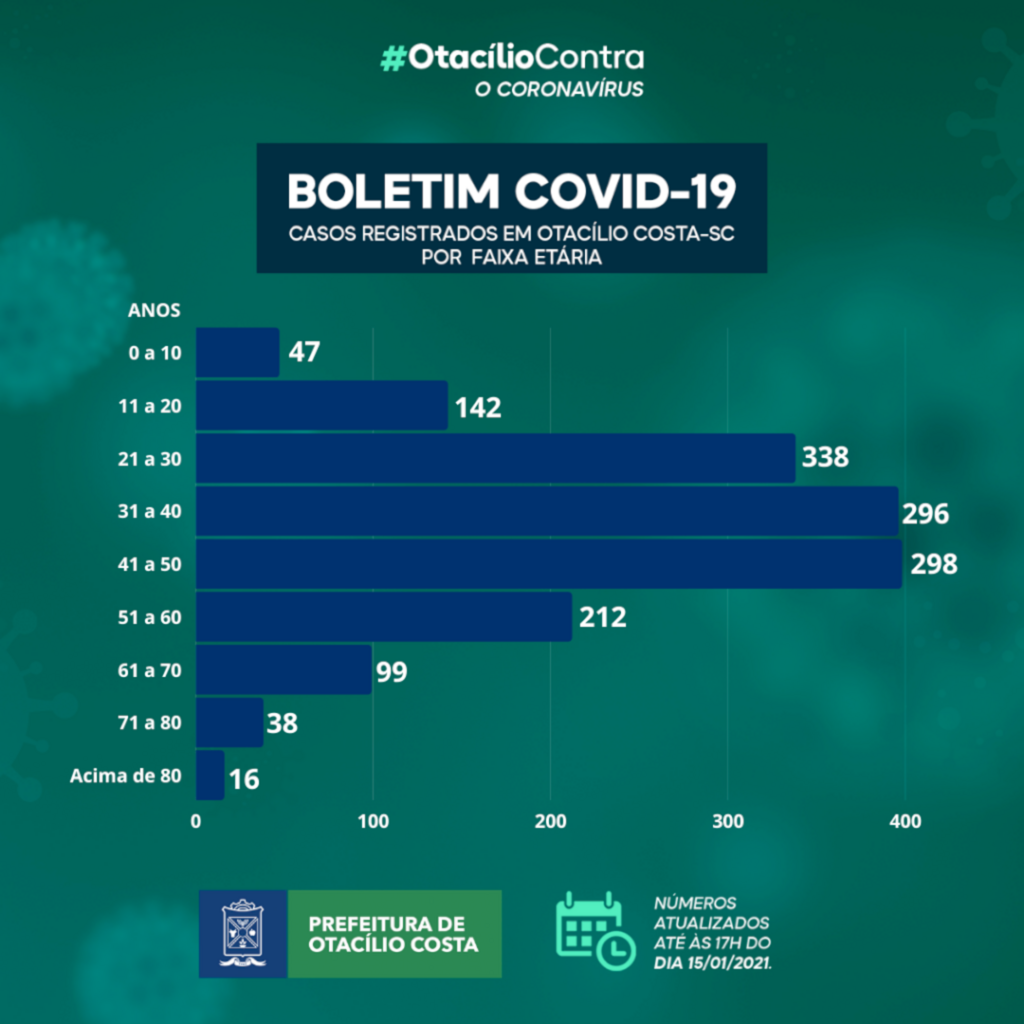 A Prefeitura de Otacílio Costa, nesta sexta-feira,15, divulgou o boletim epidemiológico informando que 56 otacilienses estão com o coronavírus ativo. No total, desde o início da pandemia, 1.486 pessoas testaram positivo para a Covid-19 na cidade.