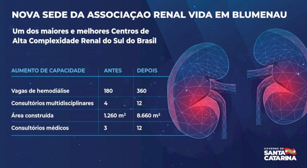 A Associação Renal Vida atua em 71 municípios do Vale do Itajaí e da Grande Florianópolis, atendendo mais de mil pacientes em hemodiálise e diálise peritoneal/mês. São 10,5 mil sessões de hemodiálise mensais e 1.993 transplantes renais acompanhados. Mais de 84% dos atendimentos são pelo Sistema Único de Saúde (SUS).