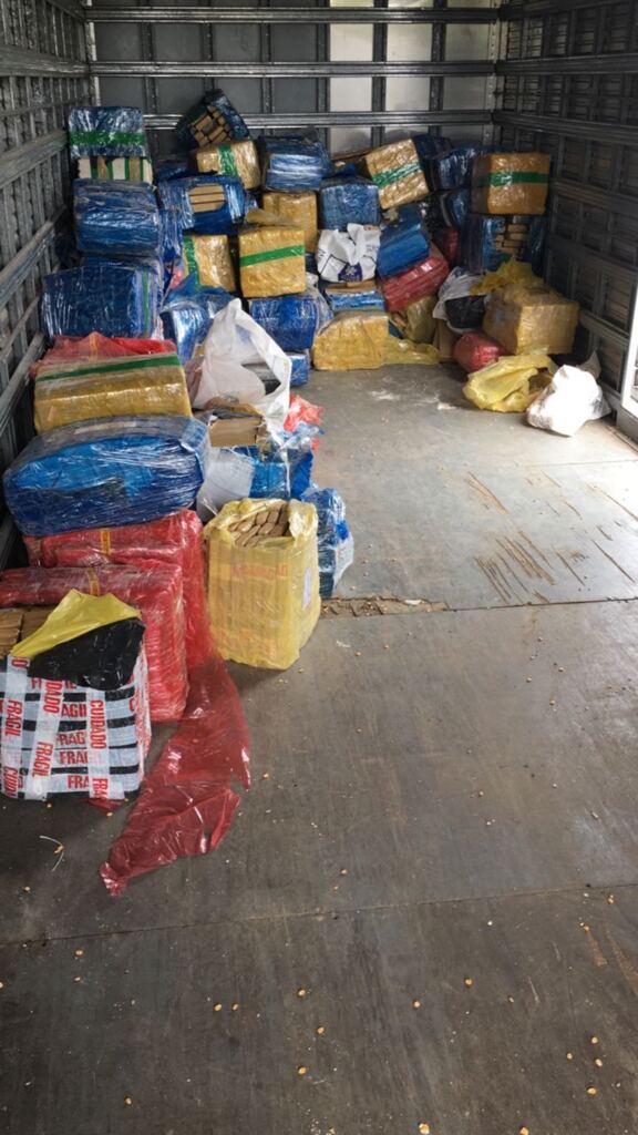 Após uma intensa troca de informações de inteligência e trabalho conjunto, uma carreta bitrem foi abordada na praça do pedágio em Porto Belo. A maconha estava escondida embaixo de uma carga de milho a granel, dividida em fardos de 30 a 40 quilos cada um. Também foram apreendidas 69 munições de fuzil calibre 7.62, 50 munições de fuzil calibre 556 e ainda aproximadamente 100 gramas de haxixe.