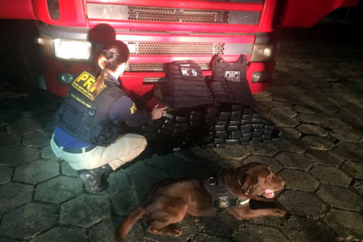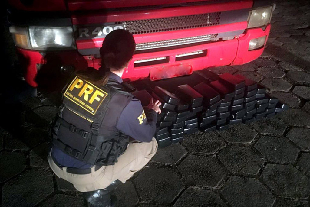 Ainda de acordo com a PRF, diante da situação, os agentes solicitaram apoio à Polícia Civil, que enviou cães farejadores, que indicaram a existência de drogas no assoalho da cabine do Scania. Os agentes, ao verificarem abaixo do local apontado, descobriram um fundo falso onde foram encontrados 86 tabletes de crack. A droga, que vinha do Paraguai, estava sendo transportada para Porto Alegre.