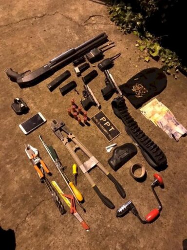 Os policiais desarmaram os homens e fizeram a varredura no veículo e no ambiente. No interior do veículo e com os agentes, foram localizadas armas, munições e materiais comumente utilizados na prática de roubos.