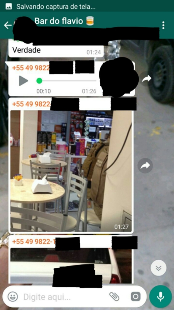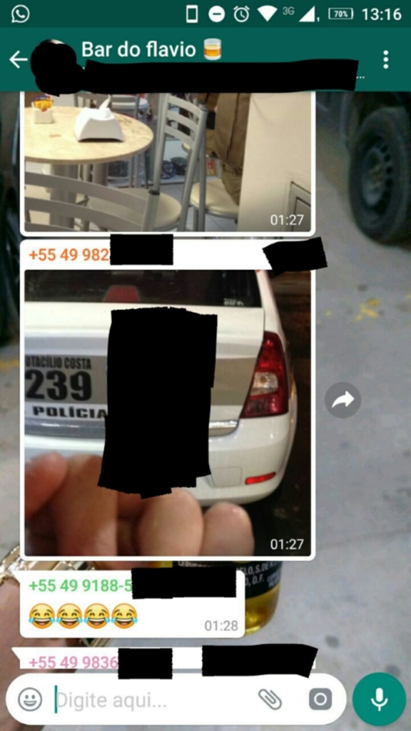 Ainda conforme a PM, o menor teria enviado ao grupo um áudio com a seguinte frase: "ALÔ GALERA DE COWBOY, ALÔ GALERA DE PEÃO, A POLÍCIA DE AQUI E VAI DA UM CHAZAO". Os policiais informaram que o conteúdo do áudio mostra presença de outras pessoas no local, e deixa explícita a intenção do menor em desrespeitar, denegrir e menosprezar os policiais presentes e a instituição Polícia Militar.