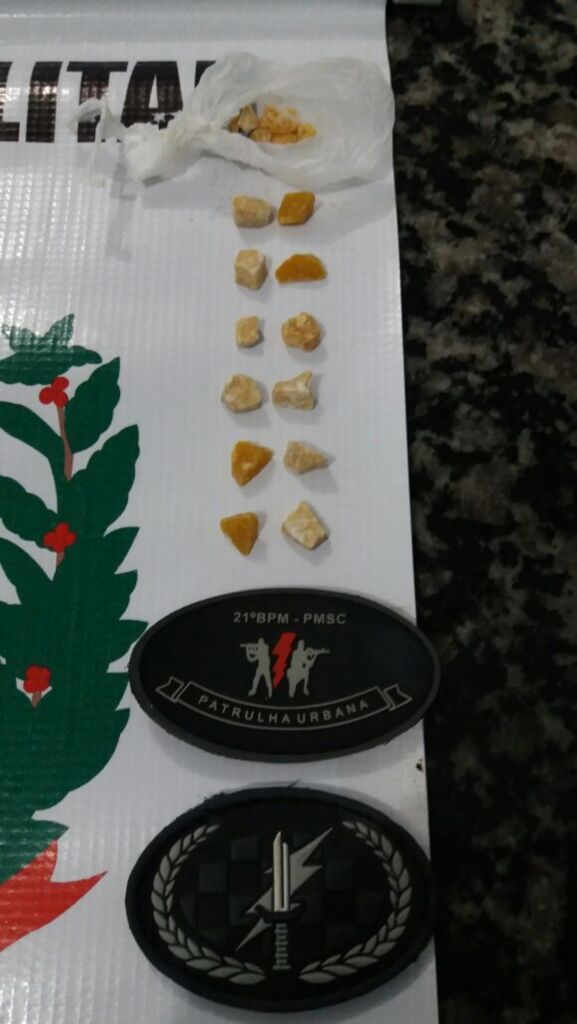 Ainda de acordo com a PM, o homem, que já é conhecido da PM pela prática, estava saindo da residência quando foi abordado pelos policiais. Segundo o boletim de ocorrência, o masculino, a princípio, negou a informação, mas ao realizarem buscas na propriedade, após terem autorização do homem para isso, os policiais encontraram 13 papelotes de substância semelhante a "Crack" embalados para comercialização, e uma espingarda de calibre não identificado e sem numeração.