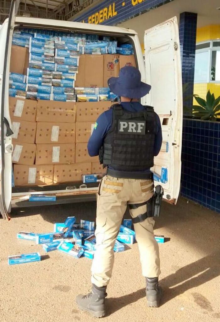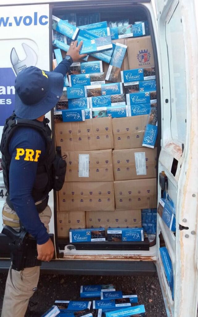 PRF apreende furgão com 50 mil maços de cigarros contrabandeados na BR 163 em Guaraciaba