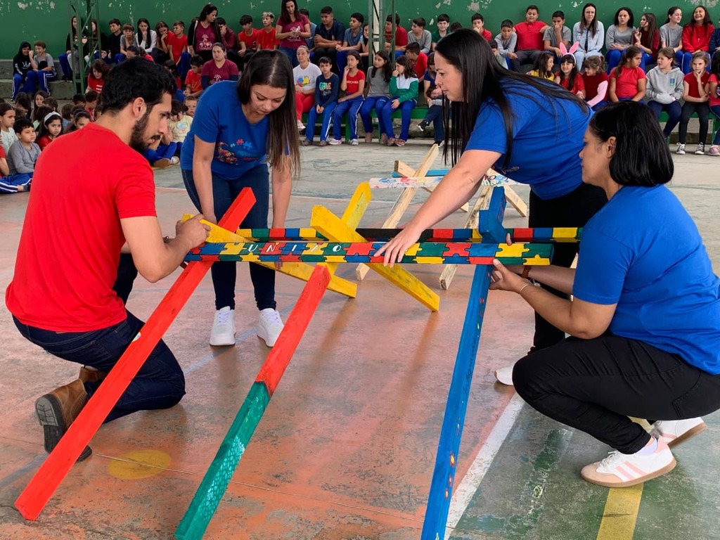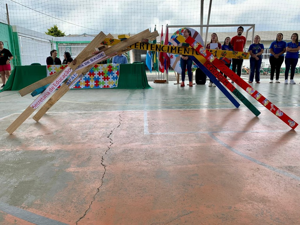 Uma das atividades que marcou o evento foi a construção de uma ponte simbólica, representando o acesso das pessoas autistas aos seus direitos, especialmente à inclusão. Para a montagem, cada turma e entidade participante contribuiu com palavras que expressam valores e ações voltadas à causa.