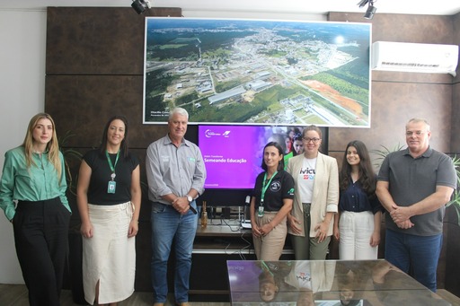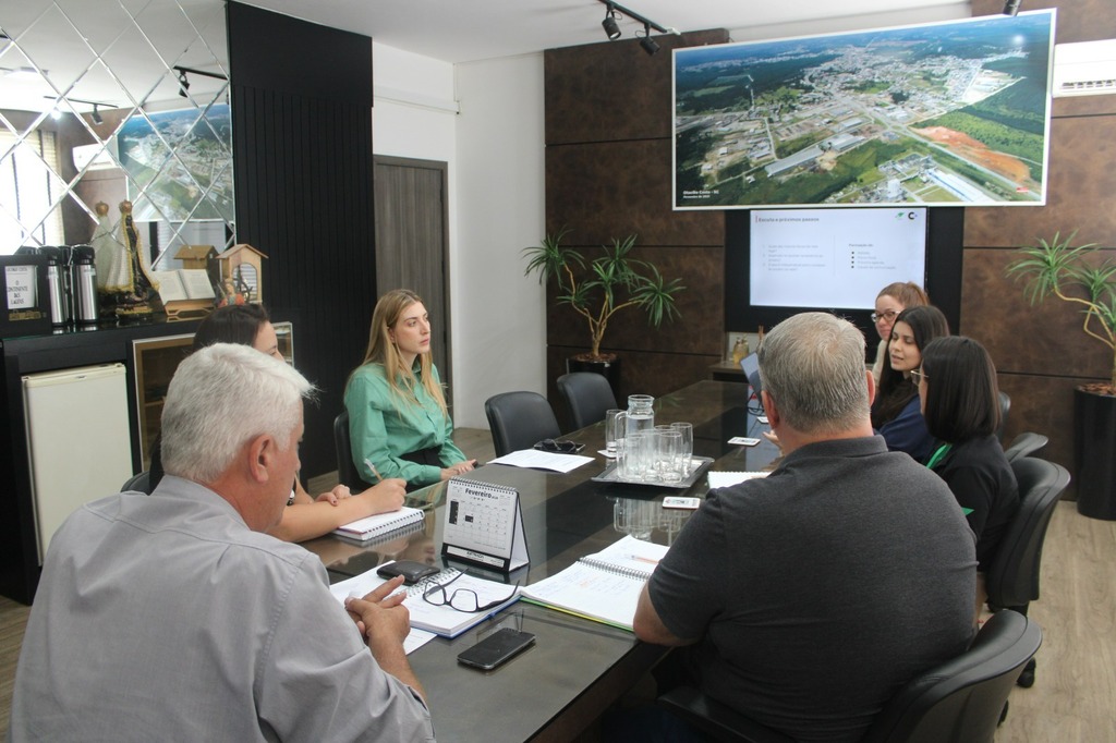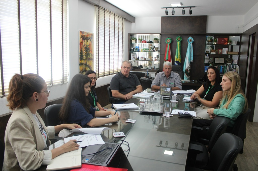 Participaram da reunião o prefeito Fabiano Baldessar de Souza, o chefe de Gabinete Luiz Carlos Marchiori, a secretária municipal de Educação Ana Luzia Santos de Liz e representantes da empresa Klabin responsáveis pelo programa.