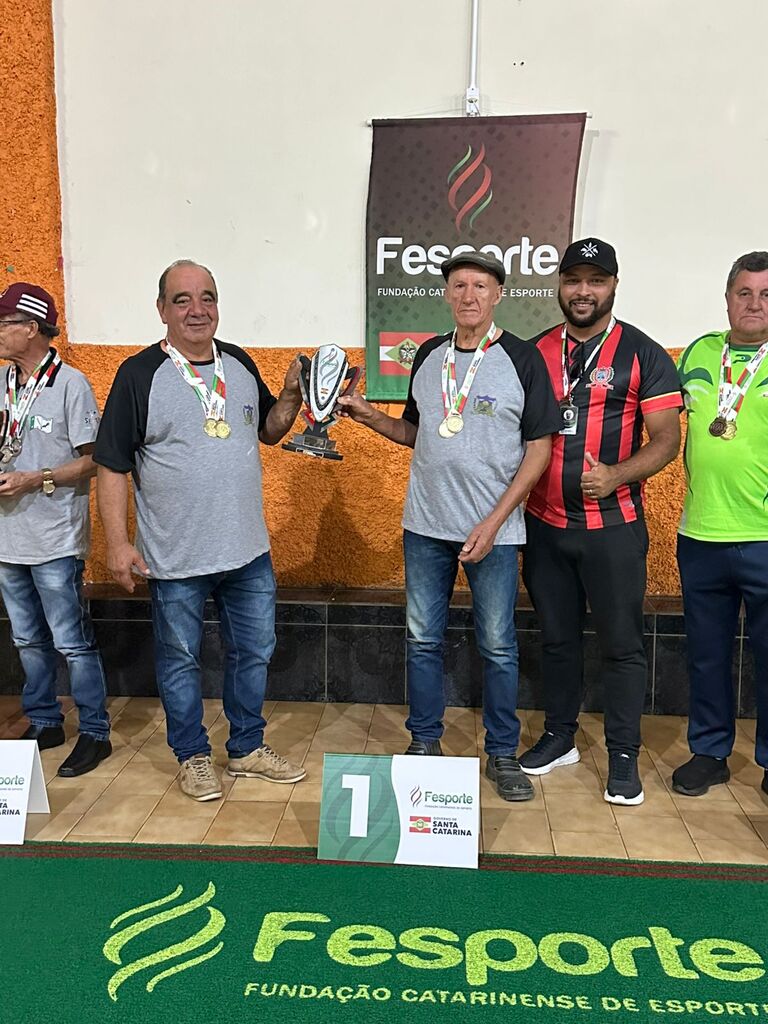 Representando Bocaina do Sul na modalidade de dominó, a dupla formada por Deiner Alves de Liz e Oscar Schmuller conquistou uma excelente terceira colocação, demonstrando habilidade e entrosamento durante as partidas.