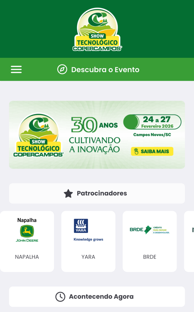 A Copercampos lançou o aplicativo oficial do 30º Show Tecnológico Copercampos, com o objetivo de facilitar o acesso às informações e ampliar a interação entre os participantes do evento. A ferramenta digital foi desenvolvida para centralizar conteúdos, otimizar a experiência do público e tornar o acompanhamento da programação ainda mais prático.Por meio do aplicativo, os visitantes podem realizar o cadastro, consultar a programação completa, fazer a inscrição em palestras, receber comunicados oficiais em tempo real e interagir com outros participantes do evento. A proposta é oferecer uma experiência mais dinâmica, conectada e alinhada às novas tecnologias, reforçando o compromisso da Copercampos com a inovação e a disseminação do conhecimento no agronegócio.O app foi pensado para atender produtores associados, técnicos, consultores, estudantes e demais visitantes, garantindo acesso rápido às principais informações do evento antes, durante e após a realização do Show Tecnológico. A plataforma também contribui para a organização do público nas atividades técnicas e palestras, tornando o fluxo mais eficiente.O aplicativo oficial do 30º Show Tecnológico Copercampos já está disponível para download na Play Store e na Apple Store, permitindo que os participantes façam o cadastro antecipadamente e acompanhem todas as atualizações do evento, que marca três décadas de história, inovação tecnológica e desenvolvimento do agro catarinense. Com a novidade, a Copercampos reforça a integração entre tecnologia, informação e relacionamento, oferecendo mais conectividade e praticidade ao público do Show Tecnológico.