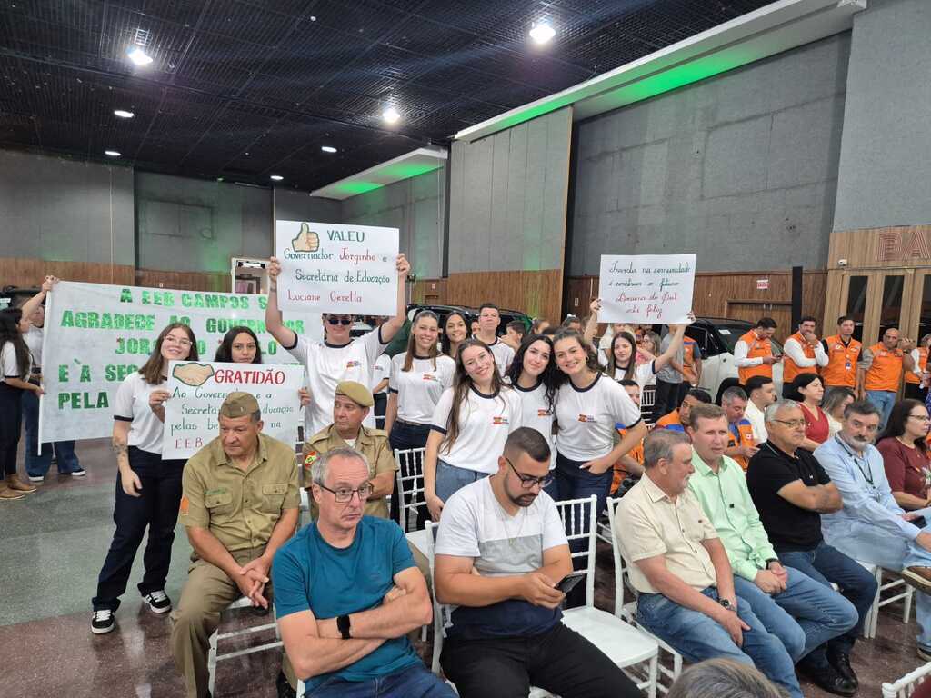 Durante o evento, foram realizadas entregas significativas para a região, com destaque para a inauguração oficial do Ginásio de Esportes da EEB Campos Sales, ampliando a estrutura esportiva e educacional para estudantes e comunidade. Também foram entregues uniformes para alunos da rede estadual de ensino, fortalecendo as ações voltadas à educação.