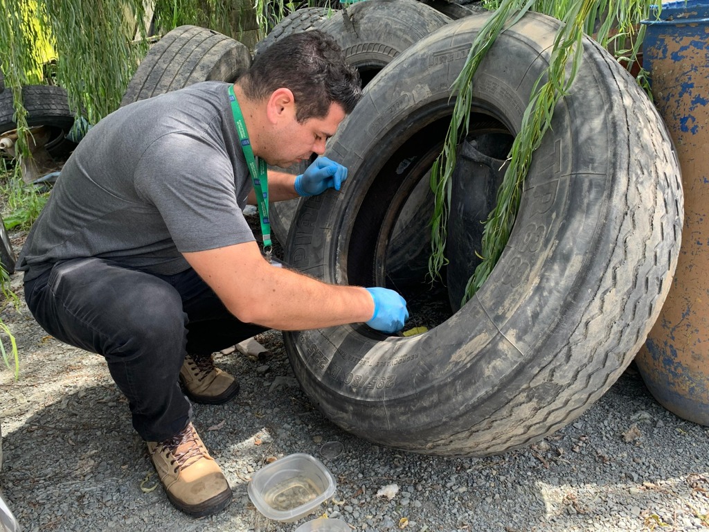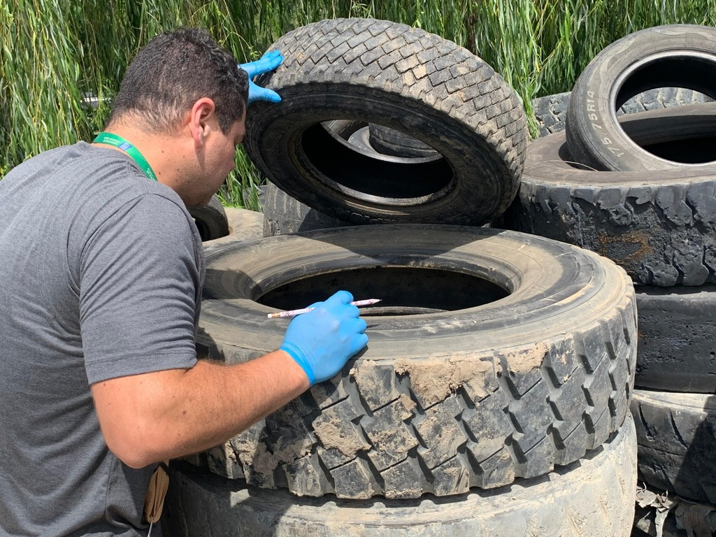 “Muitas vezes, a água acumulada dentro do pneu não é visível à primeira vista, mas já é suficiente para o desenvolvimento do mosquito. Por isso, orientamos que os pneus sejam mantidos em locais cobertos, sem contato com a chuva, ou destinados corretamente a empresas autorizadas para reciclagem”, enfatizou.