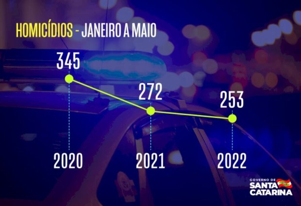 Maio apresentou redução nos principais índices de criminalidade violenta em Santa Catarina. O estado teve o menor número de assassinatos para o mês desde o ano de 2008. Foram 47 homicídios, redução de 50% em relação a 2017, quando houve o pico de mortes violentas. O dado reflete uma queda contínua, registrada na atual gestão do Governo do Estado, nos índices de violência. Entre janeiro e maio deste ano, houve diminuição de 7% nos homicídios na comparação com o mesmo período do ano passado.